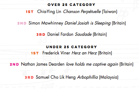 1st Prize in William Howard’s ‘Love Song’ Competition